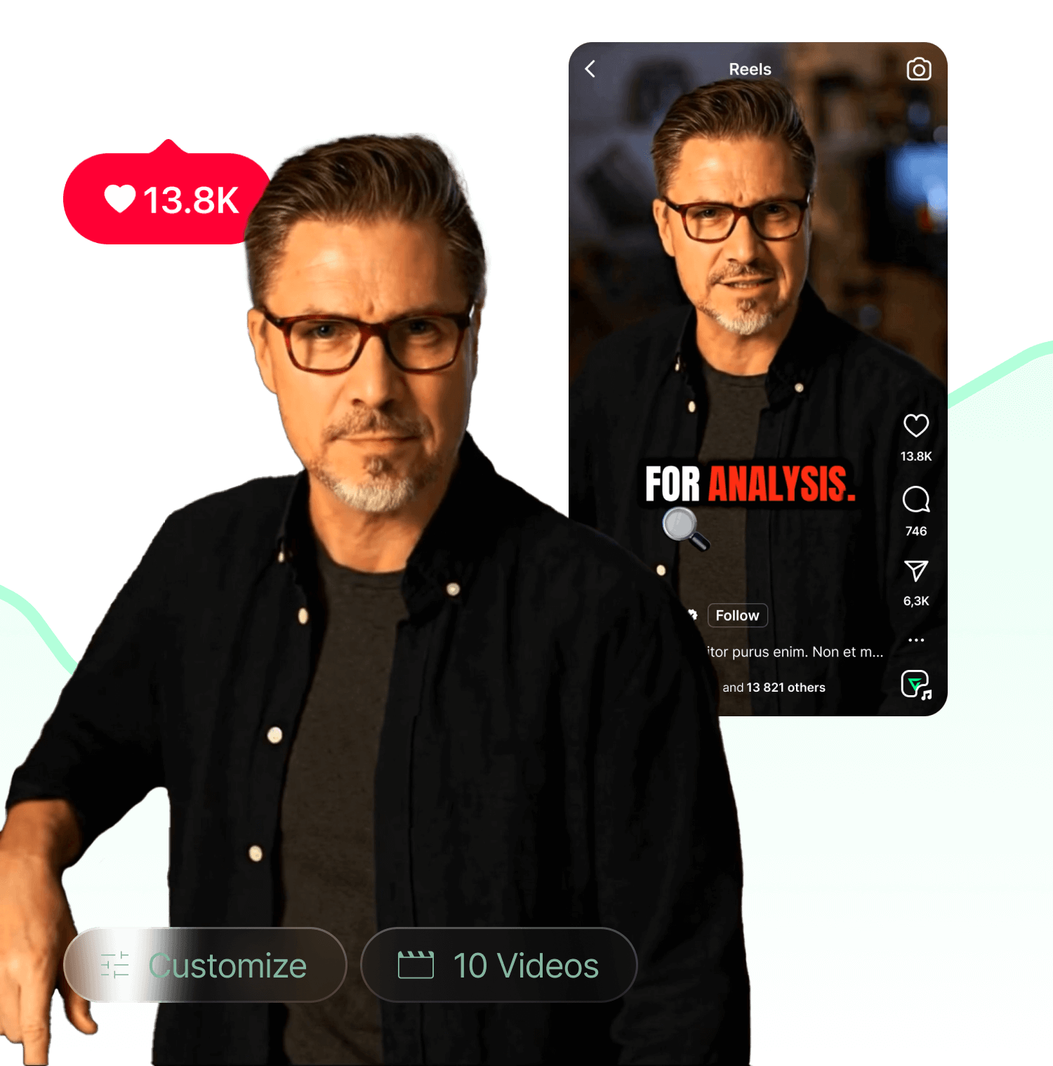 Fully customizable AI-generated video avatars used consistently across all your video, ads, and social content.