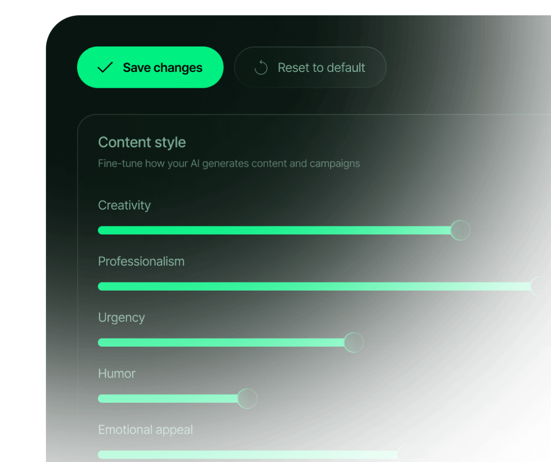 Absolutely. You have full control over your "AI brain" and can customize system prompts, company data, brand voice, and more. All campaigns are reviewed by your dedicated marketing strategist before being shown to you, and you can make any final adjustments before publishing. The AI learns from your preferences over time.